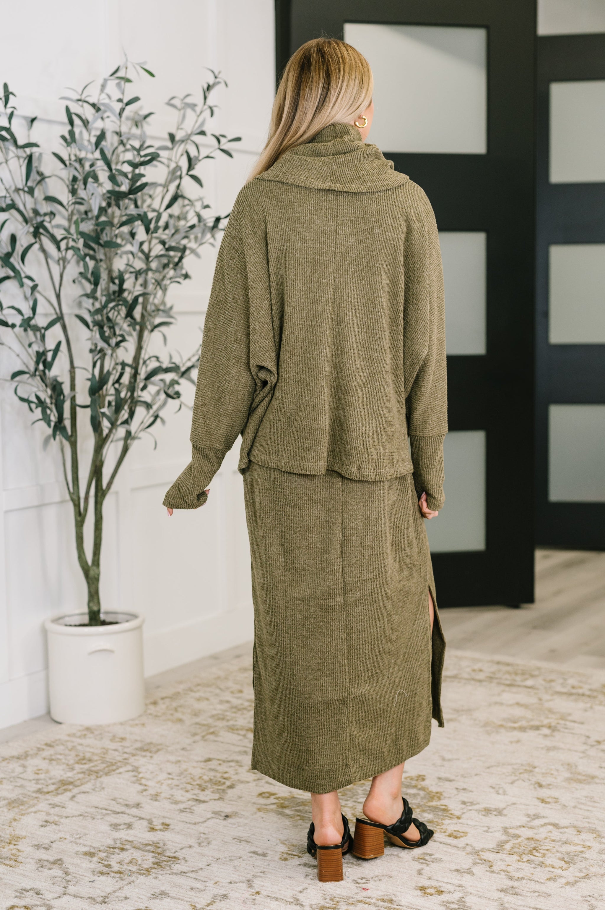 The Wander Lust Set in Olive combines cozy waffle knit fabric with high stretch for...